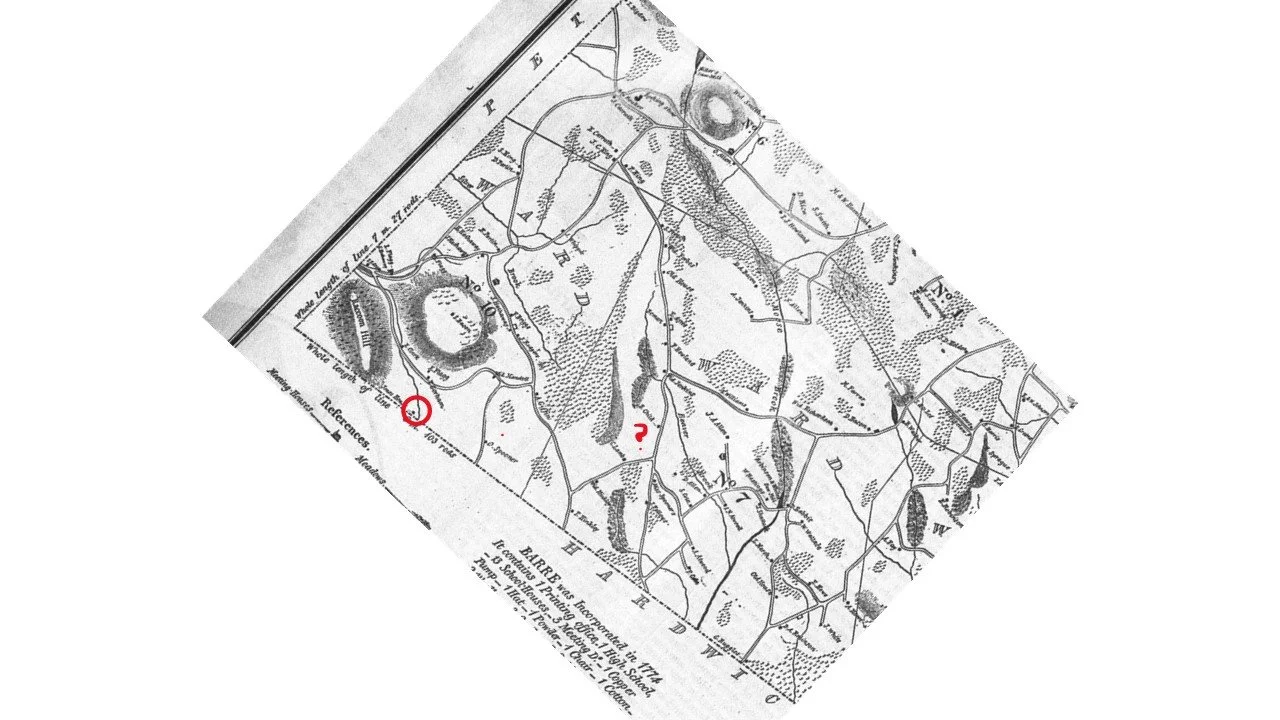 Cromwell Oliver purchased another piece of land in Barre from Moses Gill of Boston. “merchant,” in 1774. Cromwell Oliver was described as a “free Negro.” This was a 55-acre tract of land within Great Farm XXV, placing it just a bit northwest of the land that Cromwell Oliver first purchased. Great Farm XXV, a 560-acre tract of land, was around southern Springhill Road, Spooner Road, and Raccoon Hill Road. It, too, remains a very rural area near the Hardwick town line.