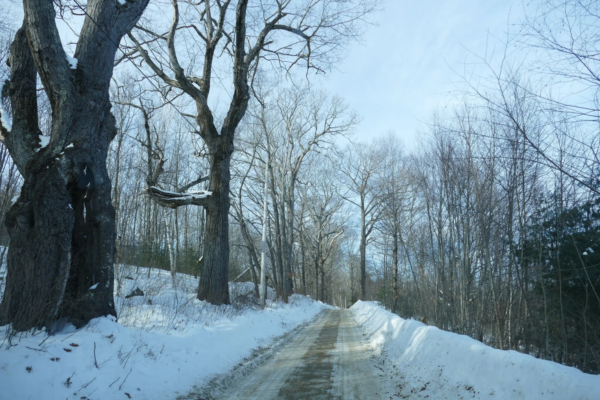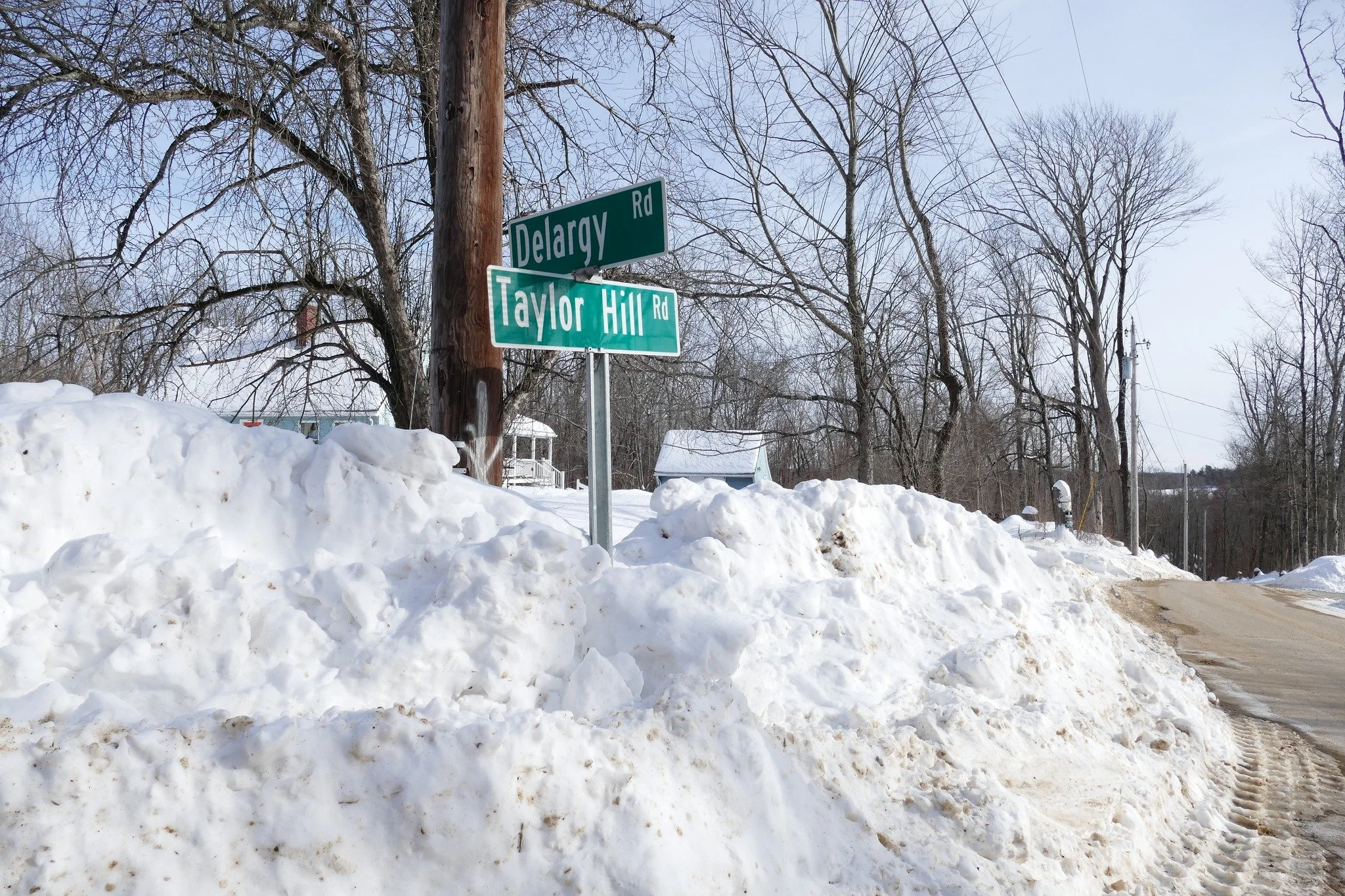 Yesterday, on a very cold Sunday afternoon, we ventured on the backroads of the western quadrant of Barre. Hardwick Road, Springhill Road, Sheldon Road, and an attempt at Blair Road, which had not been plowed. The terrain here is high. Hardwick Road still offers vistas east over cleared fields before going back into deep woods at the Hardwick town line. Going a bit farther into that town, we found the sign for Taylor Hill Road almost buried in snowbanks. Somewhere here lived Seth Taylor, who sued Cromwell Oliver and obtained part of his land as a result.