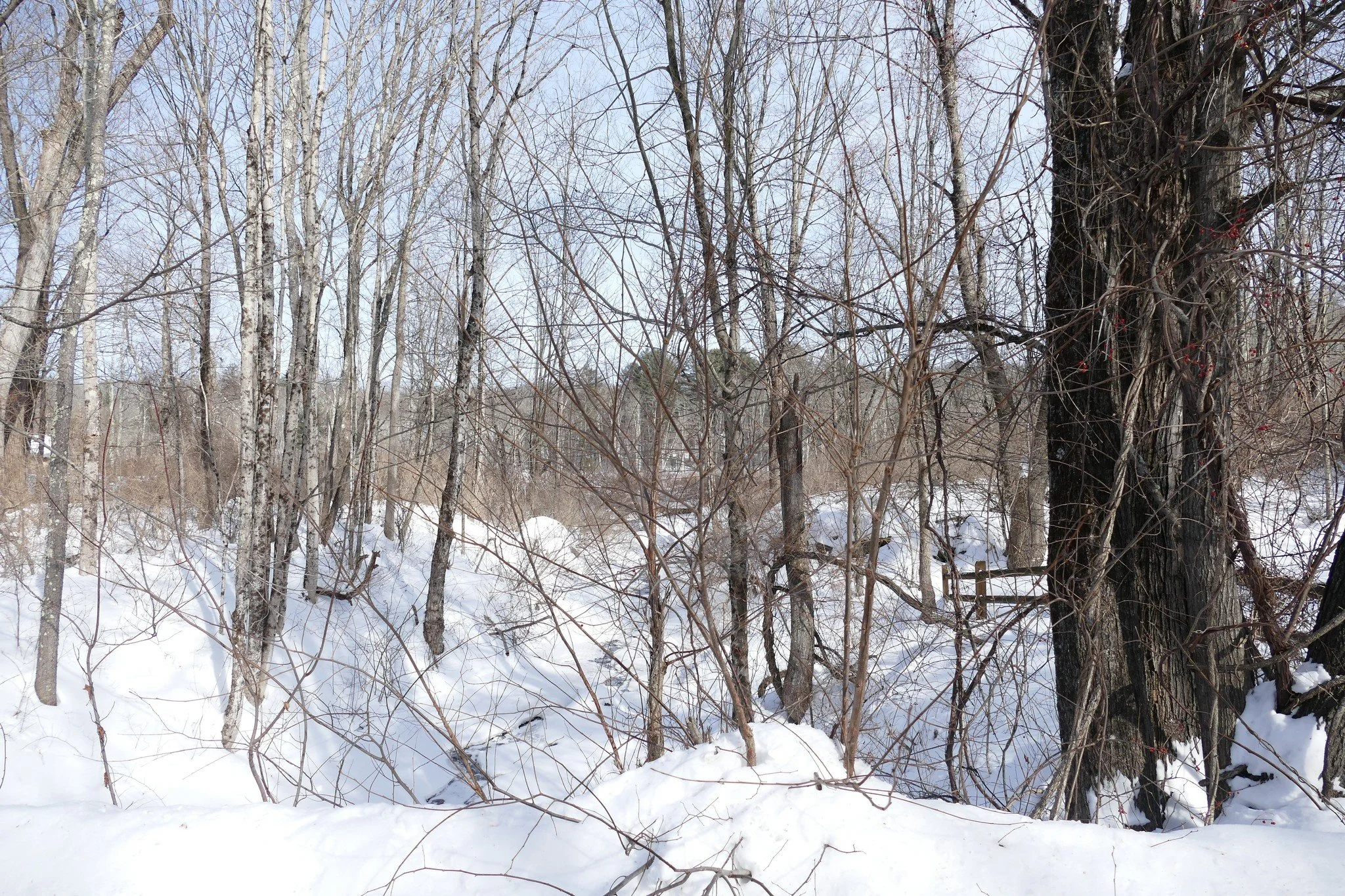 The spot on Hardwick Road where Moose Brook flows beneath, the site of Ebenezer Haskell’s fulling mill, was so deep in snow that it was hard to imagine anything else occupying the site.